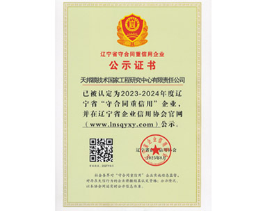 公司榮獲2023-2024年度遼寧省守合同重信用企業